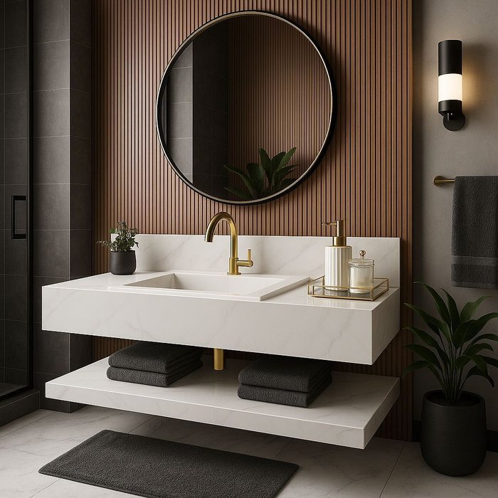 Bancada em Porcelanato para Banheiro Completa Alto Padrão 100cm Com Cuba Esculpida