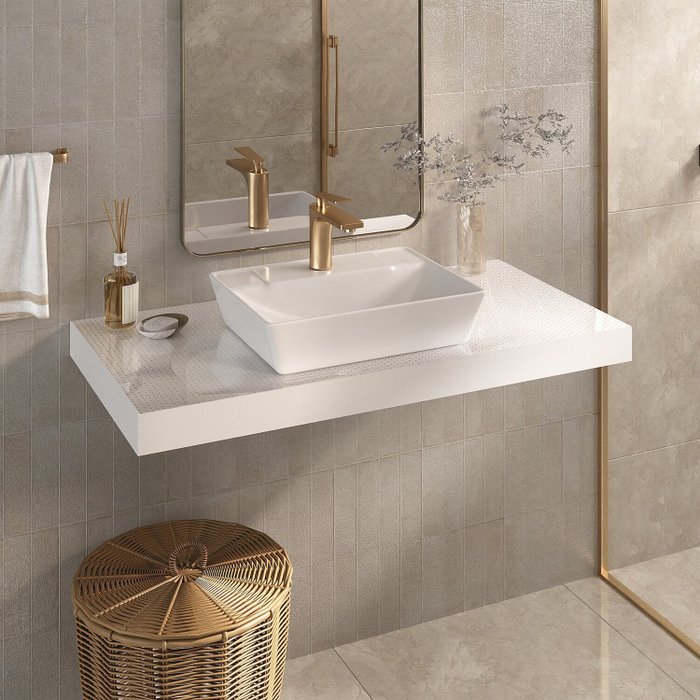Bancada Yes 100cm com Vidro com Furo e Cuba Charlô Branco