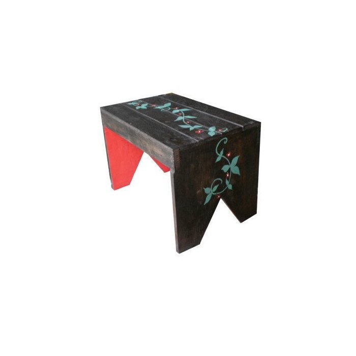 Lindo, original e robusto, este banquinho é feito com madeira de demolição. É envelhecido, encerado, reforçado e decorado com folhagens pintadas a mão.Parte interna na cor vermelhaDecoração Sustentável: Ajude a preservar nosso Meio Ambiente com muito charme e estilo!!!