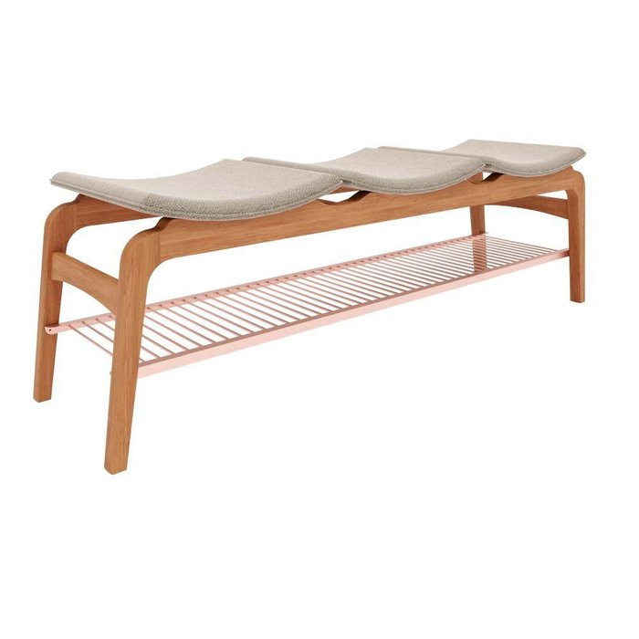 Banco Ricco 3 Lugares Madeira com Assento Estofado e Apoio Calçados Amêndoa