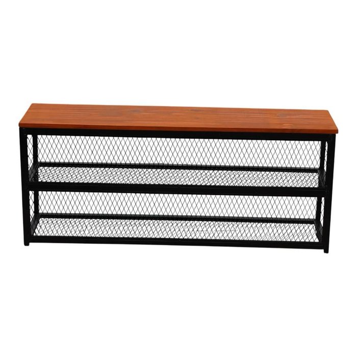 Banco Sapateira Ferro e Madeira Artesanal Estilo Industrial Recamier Tela Expandida