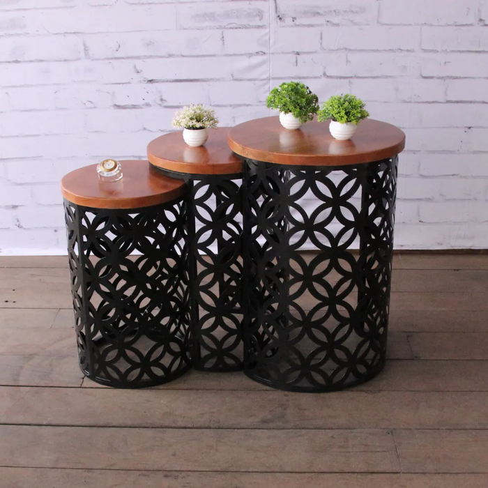 Apresentamos o Trio de Encaixe Redondo, uma solução versátil e elegante para otimizar seus espaços. Com dimensões distintas - grande, médio e pequeno - este conjunto oferece uma harmonia perfeita para qualquer ambiente. Confeccionados com maestria em ferro e madeira, esses encaixes destacam-se pelo excelente acabamento, pintura eletrostática e pés de borracha para proteção do piso. Sua versatilidade é evidente, sendo altamente recomendados para varandas, espaços gourmet, cantinhos do café, cozinhas pequenas, apartamentos, e muito mais. Transforme seu espaço com o Trio de Encaixe Redondo, combinando funcionalidade, estilo e praticidade de maneira única.