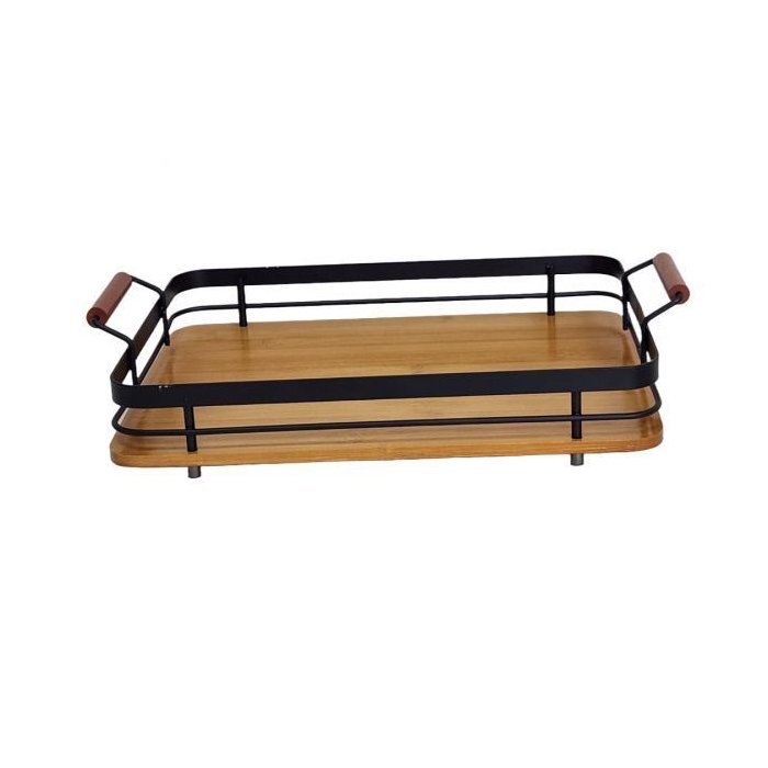 Bandeja de Bambu e Metal Para Cozinha 40x24x5,50 cm