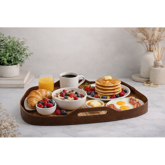 Produzida em MDF de alta resistência, com acabamento em couro sintético premium e costura aparente, esta bandeja une design moderno e funcionalidade. Ideal para servir café da manhã, lanches, bebidas ou para compor a decoração de ambientes com requinte.