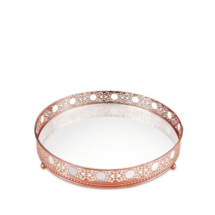 Bandeja redonda de metal rose gold luxo com trabalhado