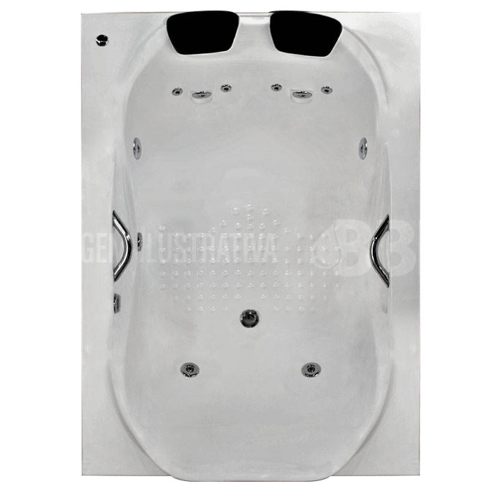 Essa banheira é equipada com: - 1 Par de alças de apoio- 2 Apoio de cabeça- 4 Jatos cromados- 6 Mini jatos- 1 Entrada de água- 1 MotoBomba de 1 cv- 1 Saída de água- 1 entrada de ar (arejador)- 1 Sucção- Tubulaçao de água dos bicos de hidromassagem- Tubulação de ar dos bicos de hidromassagem- Ralo de fundo- Bica Ladrão- Produzida em acrílico.