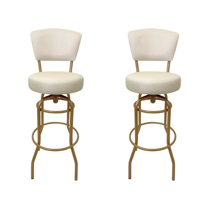 Banqueta Alta Bar Giratória com Encosto Cor Dourado Fosco Assento Grosso Cor Off White Kit 2 Peças