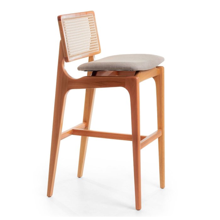 Banqueta Alta de Madeira Zaya Freijó Encosto Tela Sextavada e Assento Estofado