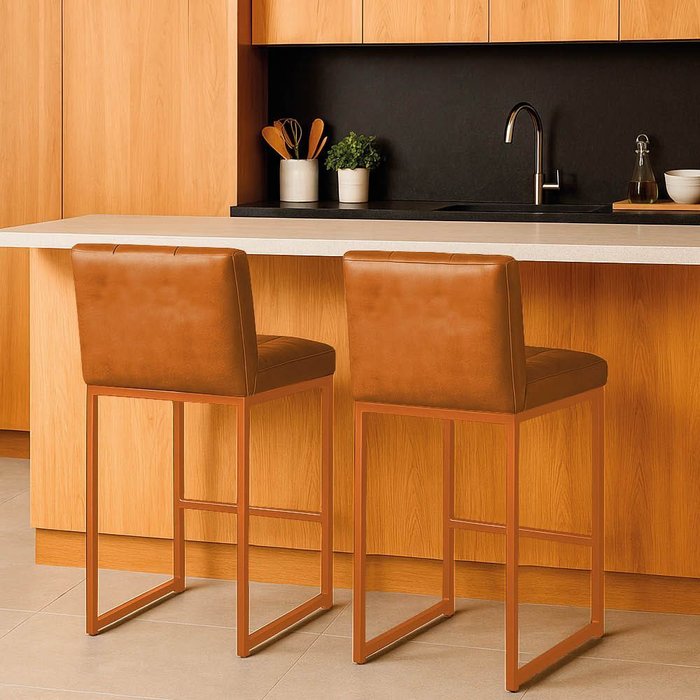 O Kit com 2 Banquetas Lirina revestida em tecido Sintético PU na base bronze é o toque de charme e sofisticação que transforma qualquer ambiente. Com design moderno e estrutura industrial em aço carbono, combina resistência e elegância em cada detalhe. O assento oferece conforto e fácil limpeza, enquanto o encosto fixo com espuma D-23 garante o apoio ideal para momentos de descontração. Versátil, é perfeita para cozinhas, bancadas, áreas gourmet, varandas cobertas, bares e espaços comerciais, valorizando cada espaço com estilo e personalidade. Possui apoio para os pés a 19 cm, altura do assento de 73 cm e suporta até 120 kg. Chega pronta para usar, sem necessidade de montagem. Ideal para quem busca conforto, durabilidade e design contemporâneo em um só produto.