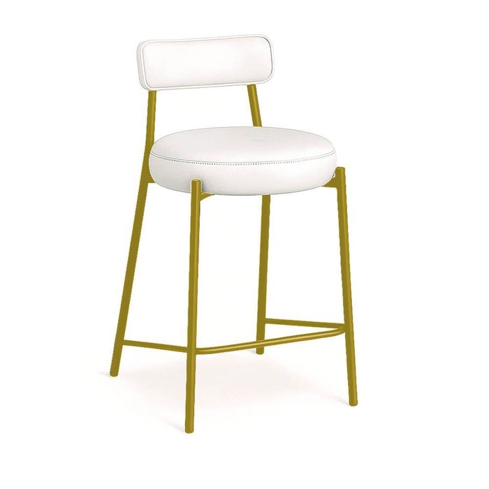 Banqueta Cozinha Média com Encosto Industrial Dourado Londres Pu Branco D03 - D'rossi