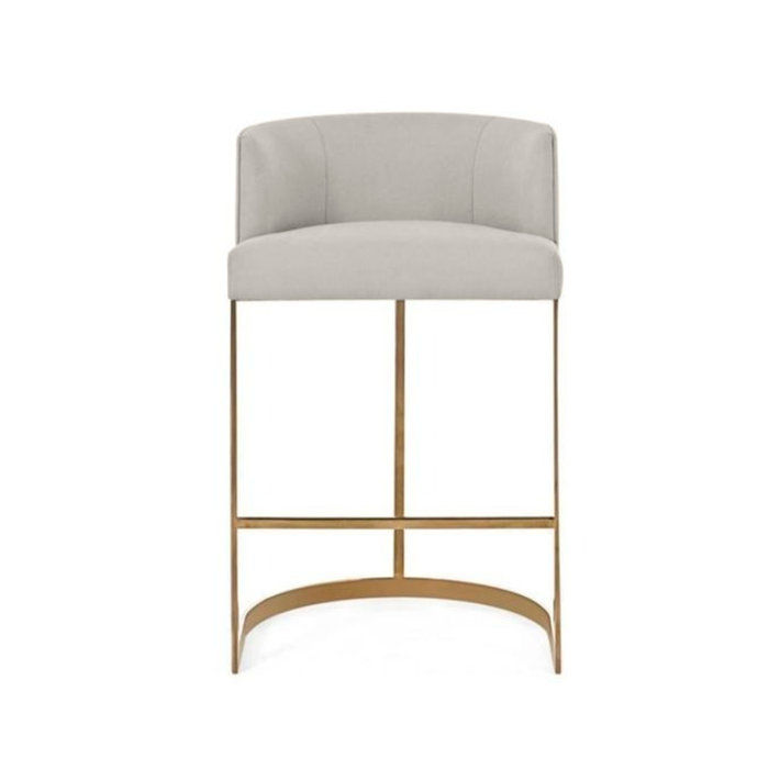 Banqueta Decorativa Alta Base Metal Cromo Dourado em Veludo - Cinza claro Veludo Cinza claro Veludo