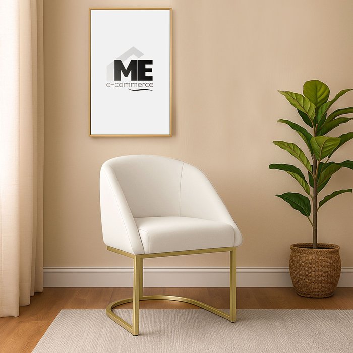 Com um design acolhedor e sofisticado, ela combina a leveza do estofado com o brilho elegante de sua base dourada. Seu encosto curvo abraça o corpo com suavidade, convidando ao relaxamento, ao cuidado pessoal e aos pequenos prazeres da rotina.