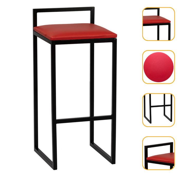 Banqueta Quadrada Preta para Balcão Ilha Cozinha Gourmet Bancada Piscina Bares Àrea de Lazer Vermelho