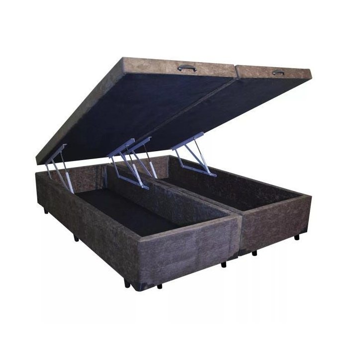 Base Box Baú King Bipartido Khouse Suede Marrom 40x192x203