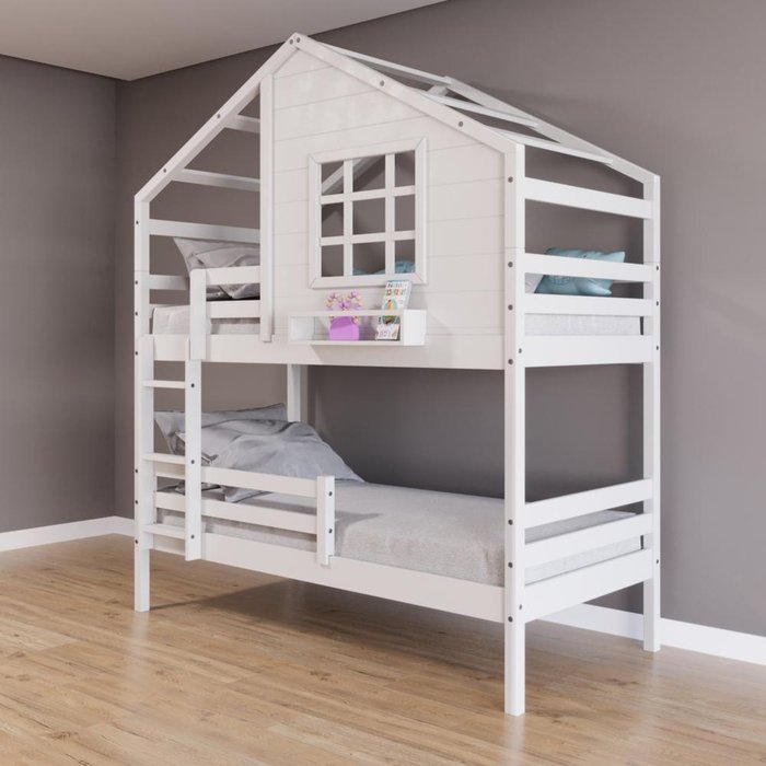 Diferenciais: Escada Fixa, Casinha com fechamento em MDF, Janela e Prateleira para Livros e Decoração, Grade de Proteção Removível, Montagem Reversível (Lado Direito ou Lado Esquerdo)
