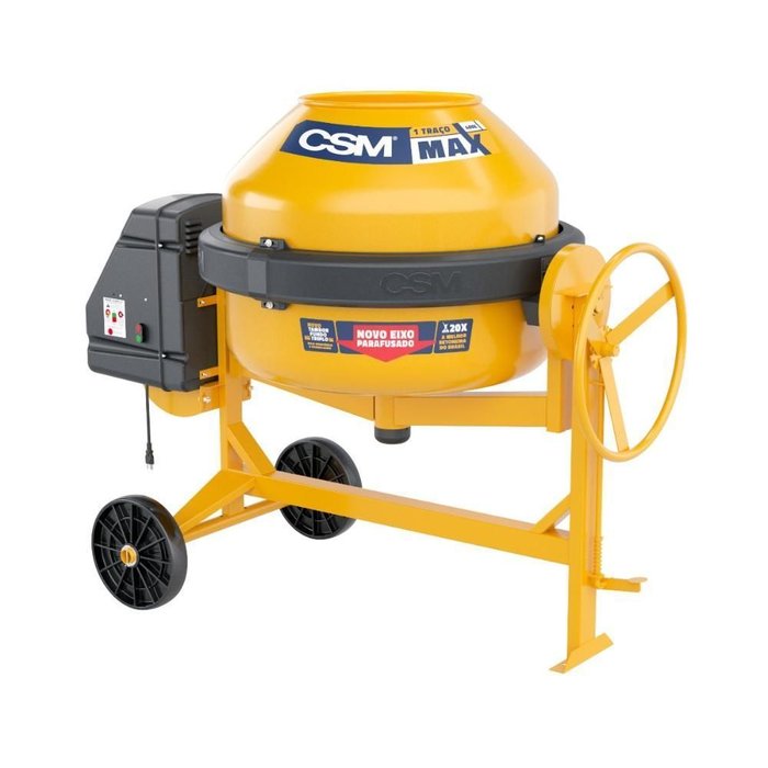 Nível de Ruído: 92 dBA A Betoneira 1 Traço Max da CSM foi projetada para otimizar o desempenho, incorporando inovações como a cremalheira segmentada e a união do tambor por encravamento, garantindo resistência e durabilidade. O volante maior e reforçado proporciona praticidade, enquanto o tambor com fundo triplo e eixo parafusado asseguram qualidade e robustez. O cavalete com tubo reforçado completa o conjunto. Este produto é indicado para reformas ou construção de casas, com um excelente aproveitamento de rendimento de mistura de 280 litros. Diferenciais: