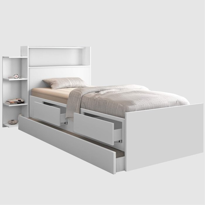 Bicama Baú Solteiro com Nicho Secret Branco Branco