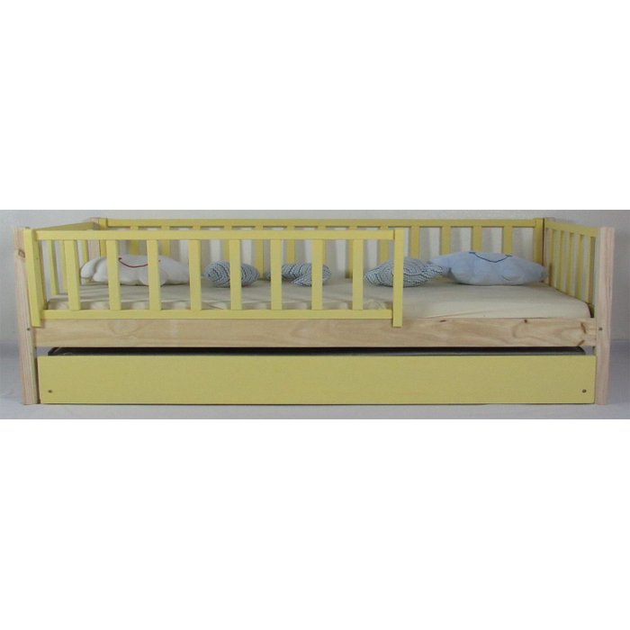 Bicama Infantil Solteiro Base Colorida Madeira Maciça Pinus Grade Vertical Verniz + Amarelo