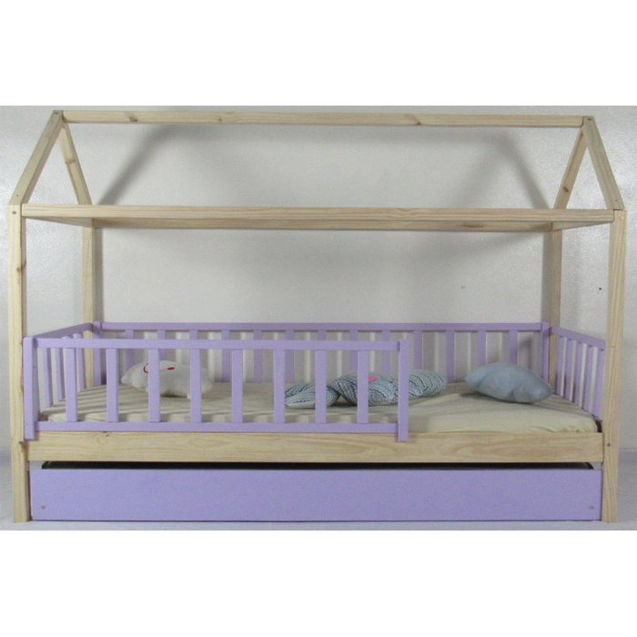 Bicama Infantil Solteiro Casinha Colorida Madeira Maciça Pinus Grade Vertical Verniz + Lilás