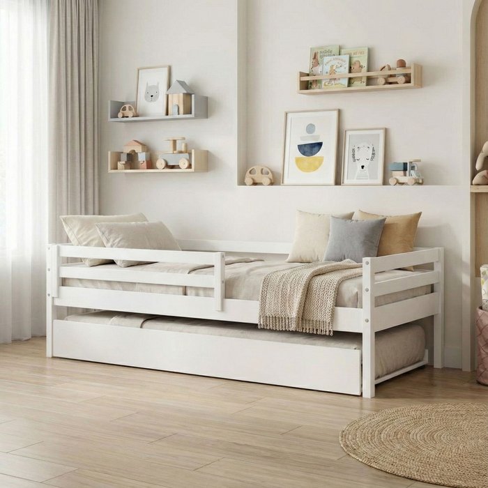 Cama nobre em madeira maciça e com proteção perfeita para seu filho ter uma bela noite de sono. Esta cama possui uma Cama Auxiliar e Grade de Proteção IV para deixar o quarto infantil decorado e com estilo próprio. O acabamento é com pintura em laca branco, proporcionando maciez ao tocar no produto. Foi desenvolvido especialmente para o público infantil e direcionado para crianças com idade a partir de 1 ano e 5 meses.