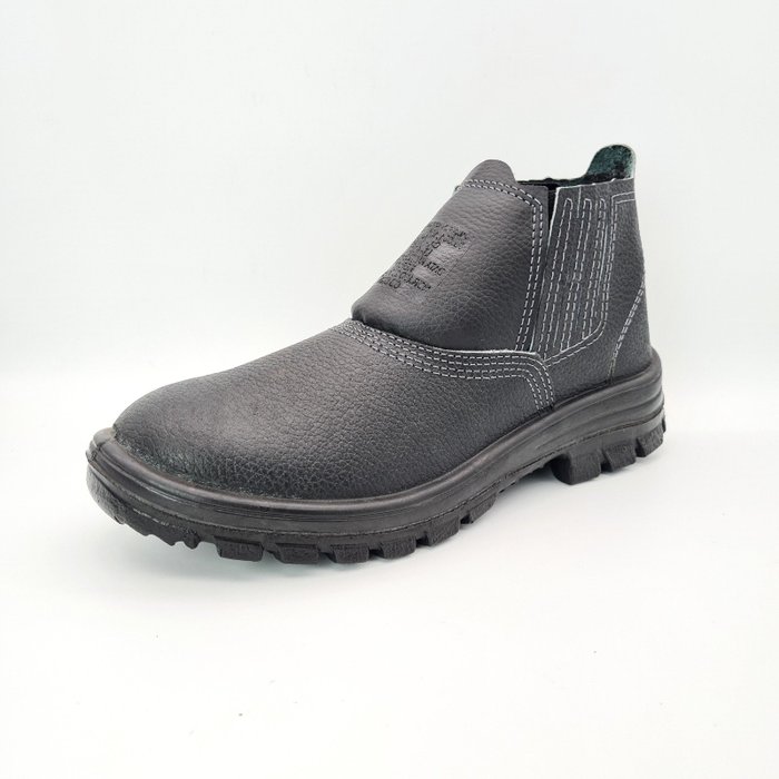 Calçado ocupacional tipo botina, modelo blatt, fechamento em elástico, confeccionado em couro curtido ao cromo, palmilha de montagem em não tecido, montada pelo sistema strobel, solado em poliuretano monodensidade.