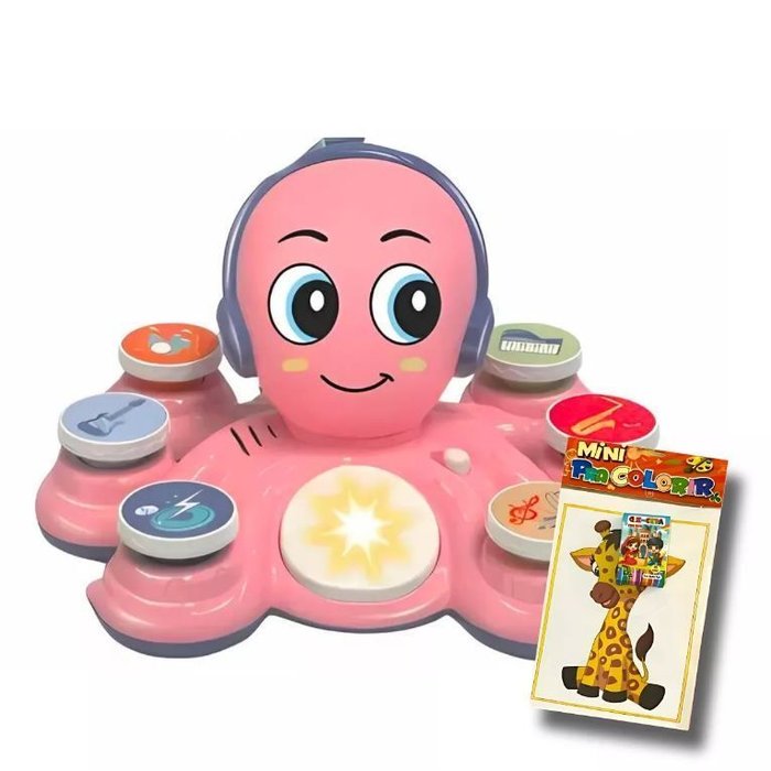 Brinquedo Educativo Polvo Musical Com 6 Botões Rosa + 20 Sons ROSA