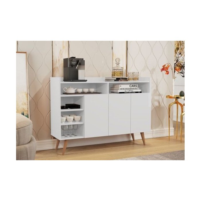 Buffet Aparador Cantinho do Café Retrô Pés Madeira 3 Portas e Nichos Celta:branco Branco