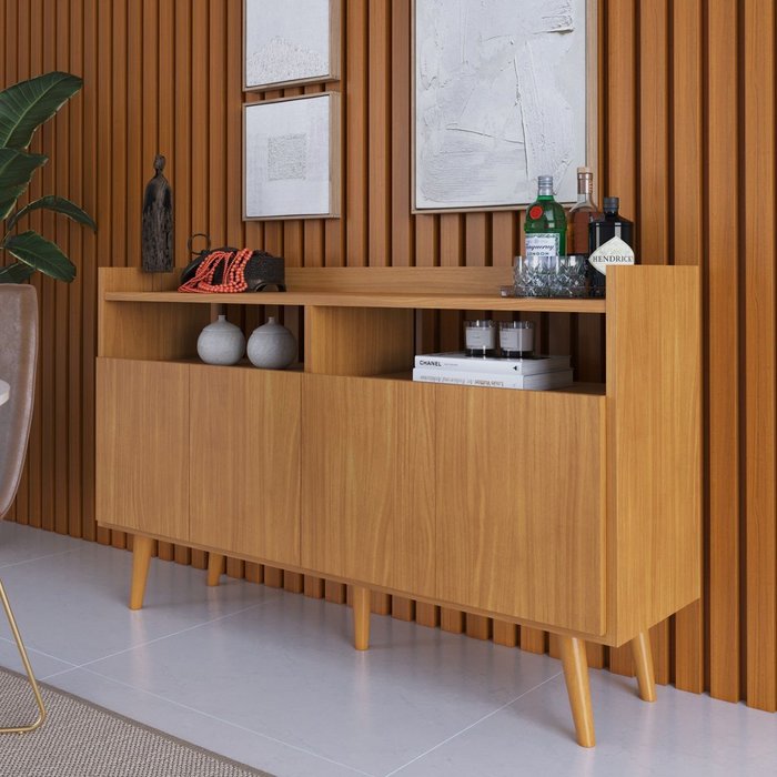 Buffet Aparador Intense 4 Portas 2 Nichos Retrô Balcão Sala e Escritório Cantinho do Café - Nature