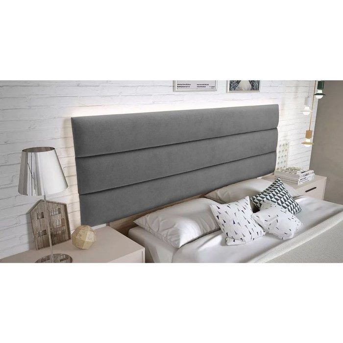 Cabeceira Box Shop Line Casal 1,40m Painel Em Suede Cinza Cinza
