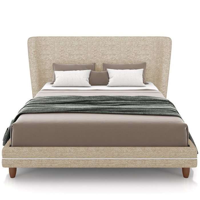 Cabeceira Casal Nilo 195cm com Cama Pés Madeira Suném P05 Linho Bege - Lyam Decor