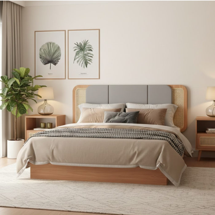 Cabeceira Casal Queen Estofada com Tela 170cm Freijó Amadeirado/Cinza Liso
