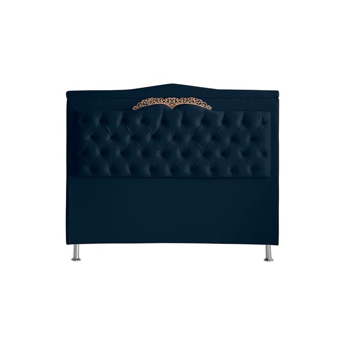 Cabeceira de Cama Box Helena Casal 140 Cm Capitonê Botão Encapados Suede Azul Marinho Eli Móveis