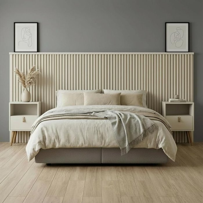 Cabeceira ripada elegante, ideal para camas casal e queen