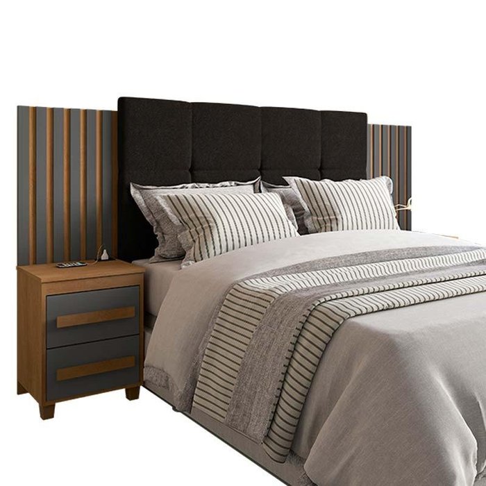 Cabeceira Ripada Estofada Casal / Queen / King com 2 Criados Suíça Rv Móveis Cinamomo/grafite