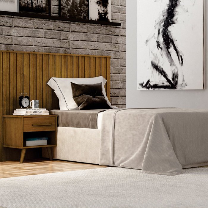 Cabeceira Solteiro Milano Ripado com Mesa de Cabeceira Cinamomo