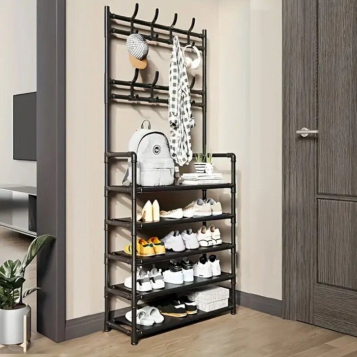 Cabideiro Sapateira Prateleira Organizadora Metálica 5 Níveis para Calçados Chapéu e Roupas - Preta