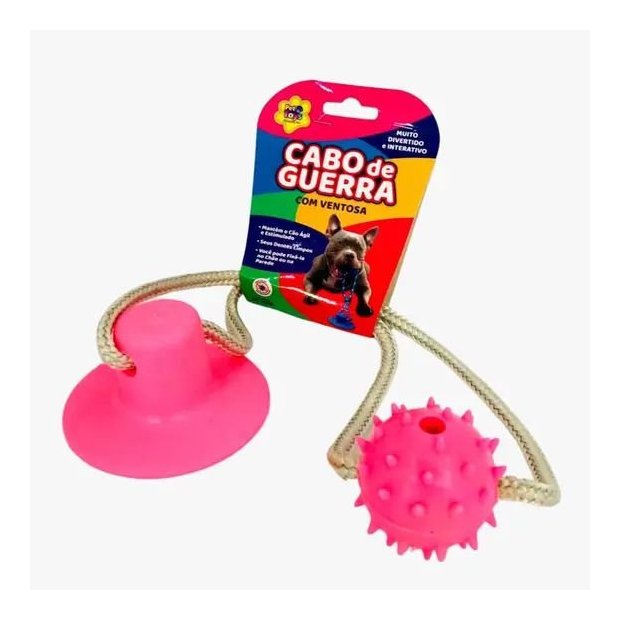 O Brinquedo Cabo de Guerra Com Ventosa é ideal para o pet que fica sozinho em casa e não tem com quem brincar. A ventosa pode ser presa no chão ou na parede e o cachorro pode brincar de cabo de guerra puxando ou mordendo a outra ponta