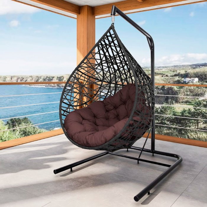 Cadeira Balanço Ninho Suspenso Gota Tramado com Suporte e Almofada Impermeável Acesse Móveis Preto com Marrom