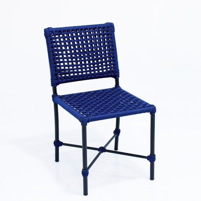 Cadeira de Alumínio e Corda Náutica para Área Gourmet Estrutura preto fosco, corda azul