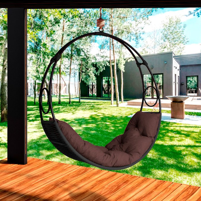 Cadeira de Balanço Lua Suspenso em Corda Náutica Preto/Marrom