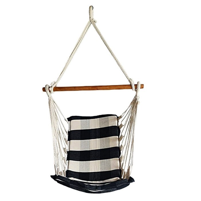 Cadeira de Balanço Suspensa Rede de Teto Varias Cores: Preto com Branco Xadrez Preto com cru xadrez