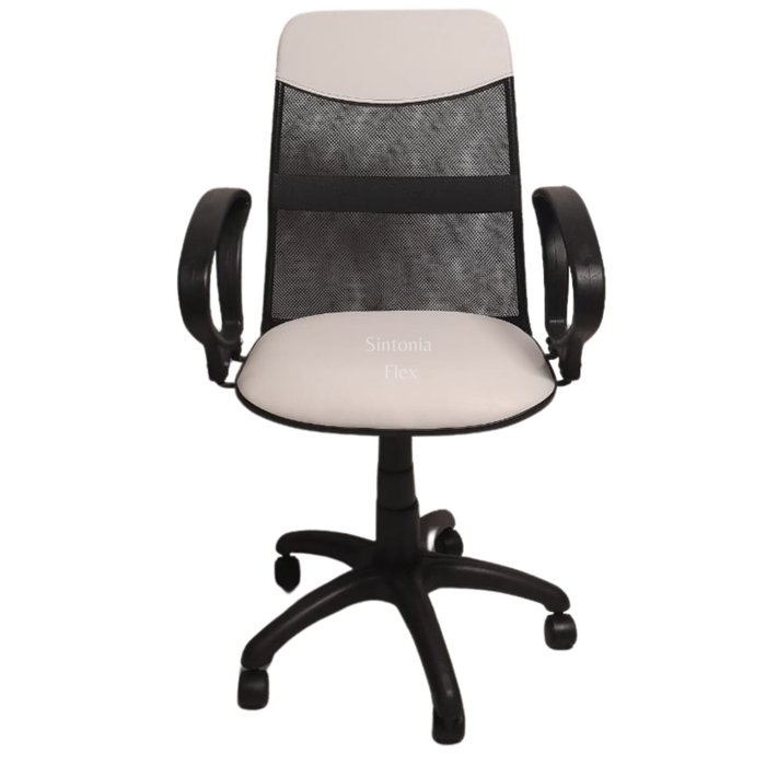Cadeira Diretor - braço fixo - estrutura do encosto em aço, revestida em tecido tela com faixa e detalhe em corano - assento em madeira reflorestada - espuma injetada, revestida em couro sintético e bordas em pvc flexivel, mecanismo relax , que permite o inclinamento do encosto, base estrela em nylon com rodizio - regulagem de altura a gás.