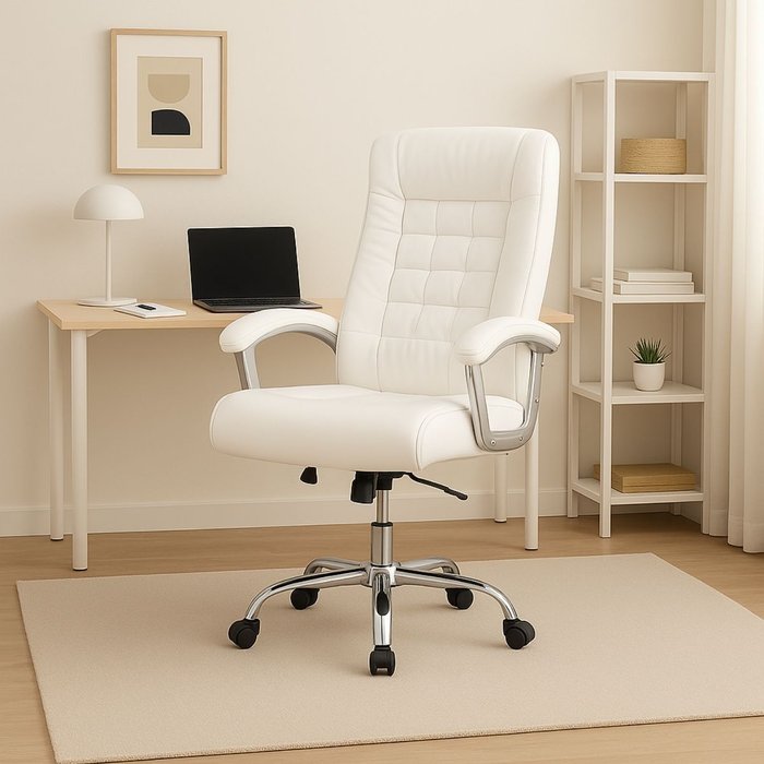 Cadeira Escritório Miami Branca Presidente Molas Ensacadas Reclinável Conforto
