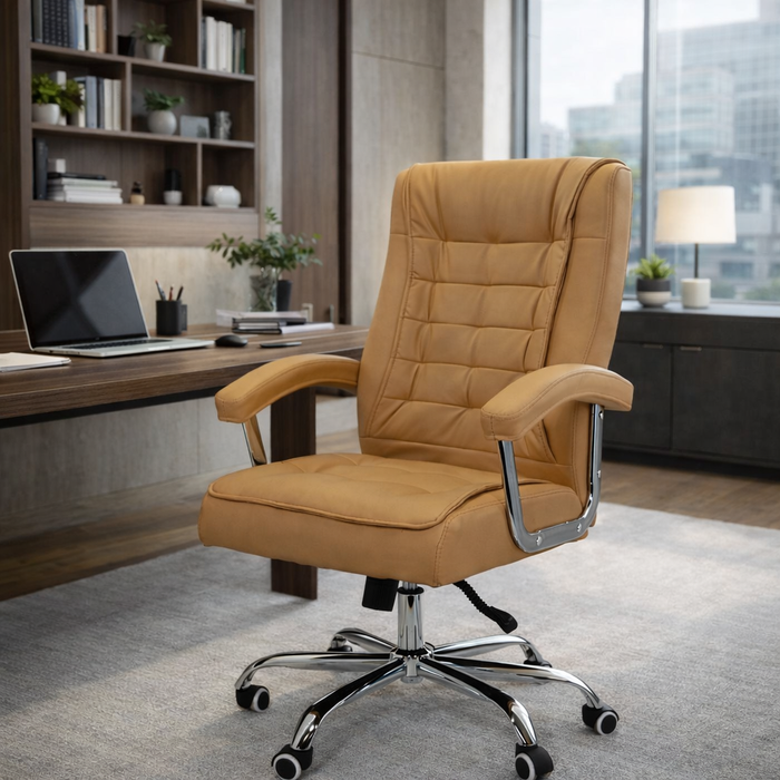 Cadeira Escritório Presidente Premium Assento com Molas Ensacadas Revestida em Couro Sintético Bege