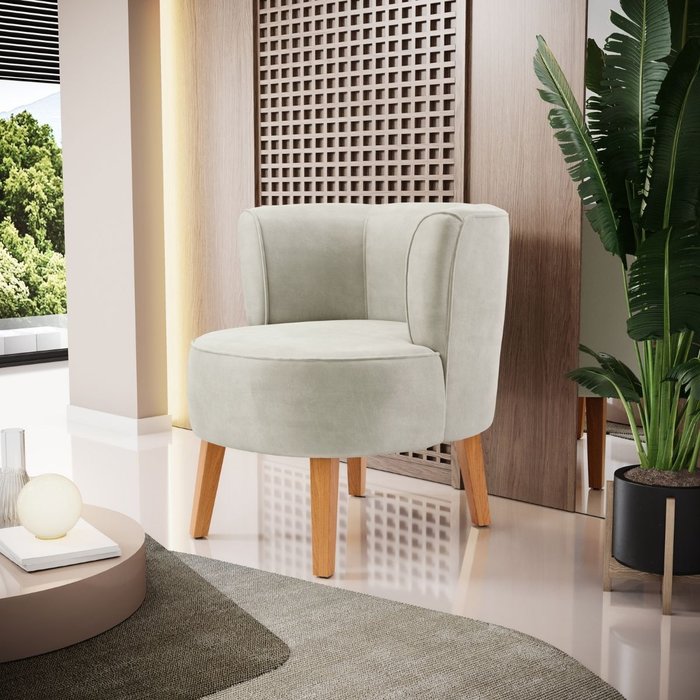 Cadeira Estofada para Sala de Estar Tecido Veludo Aconchegante Reforçada Ergonômica Bege