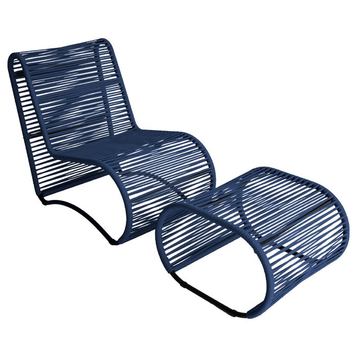 Cadeira Poltrona e Puff Porto para Área Externa em Alumínio e Corda Náutica Azul