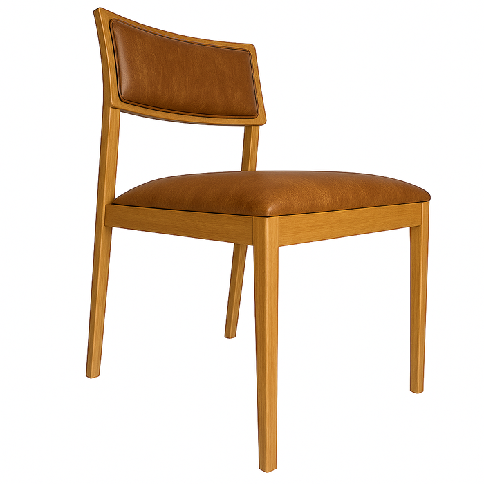 Cadeira Siena Madeira Maciça com Estofado em Tecido 2 pçs - Élpis Móveis - Couro Ecológico Caramelo