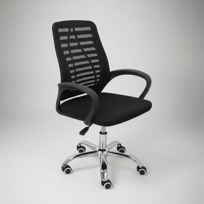 A base cromada giratória com rodízios anti-risco garante mobilidade fluida e estabilidade robusta — perfeita para quem busca desempenho e estética executiva.