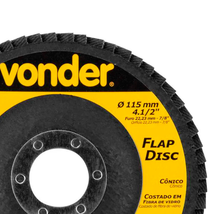 | Modelo | Caixa com 10 Discos de Lixa Flap 4.1/2" Grão 60 Vonder |