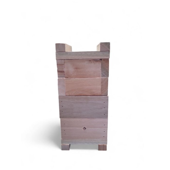 O design funcional com duas melgueiras facilita a coleta do mel e a expansão da colônia, tornando o manejo mais prático e produtivo. Além disso, a resistência do eucalipto garante longa vida útil ao produto, mesmo em ambientes externos.